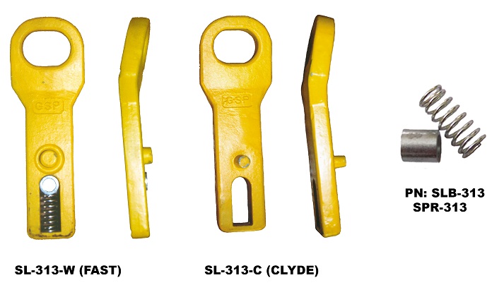 | SL-313-C | Side Lock with spring and bushing; fits Clyde | 8 7/8" x 2"; 3/4" thick |