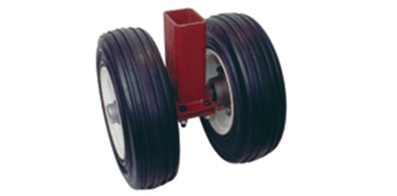 The Rear Rigid Caster Assembly is used as the rear running gear on cargo dollies. It is composed of three main elements; rear rigid post, double end unit, and tire/wheel assembly.